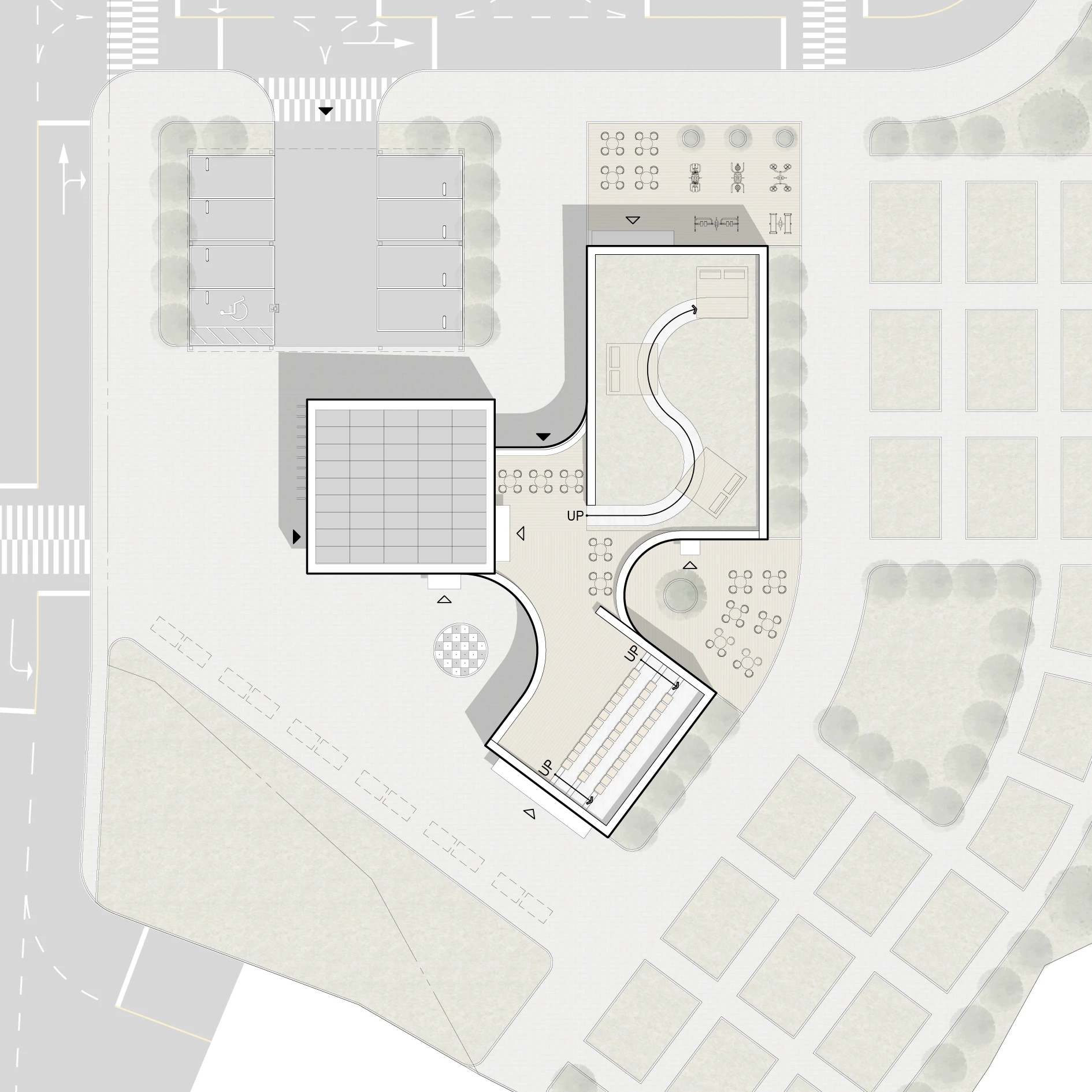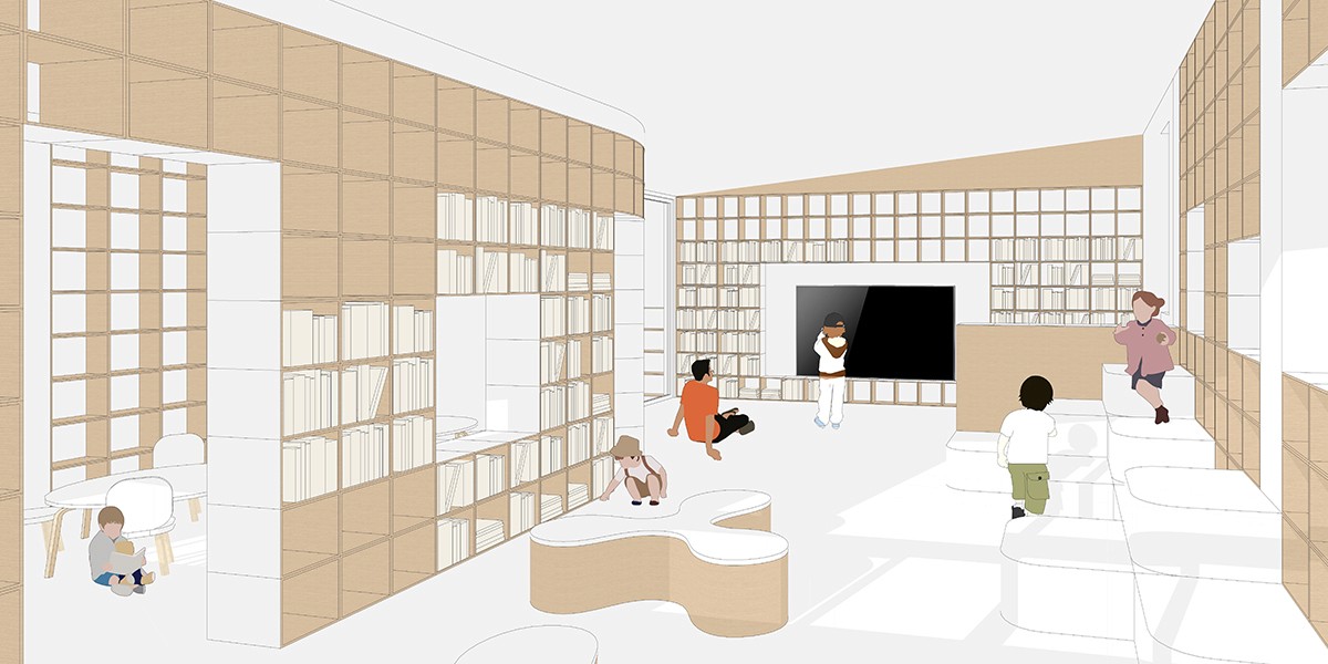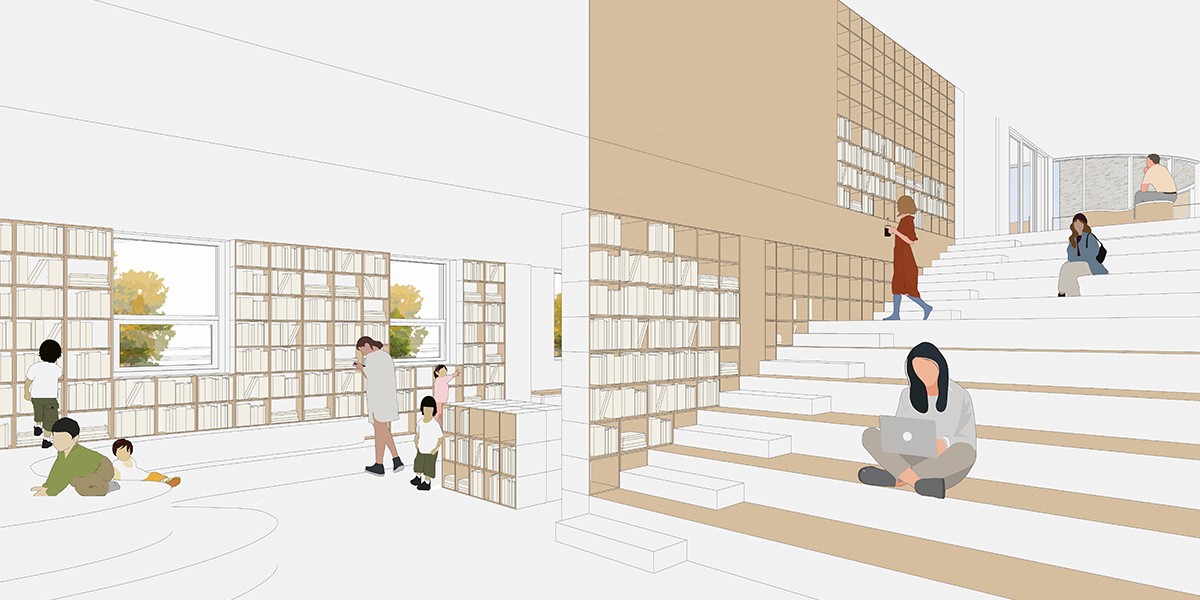 계단식 자유열람실을 통해, 1층의 도서관은 2층으로 확장되고, 도서관에서는 주거플랫폼마당과 단지가 내려다 보인다.