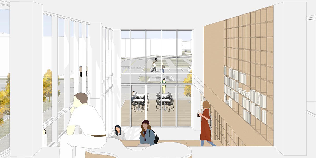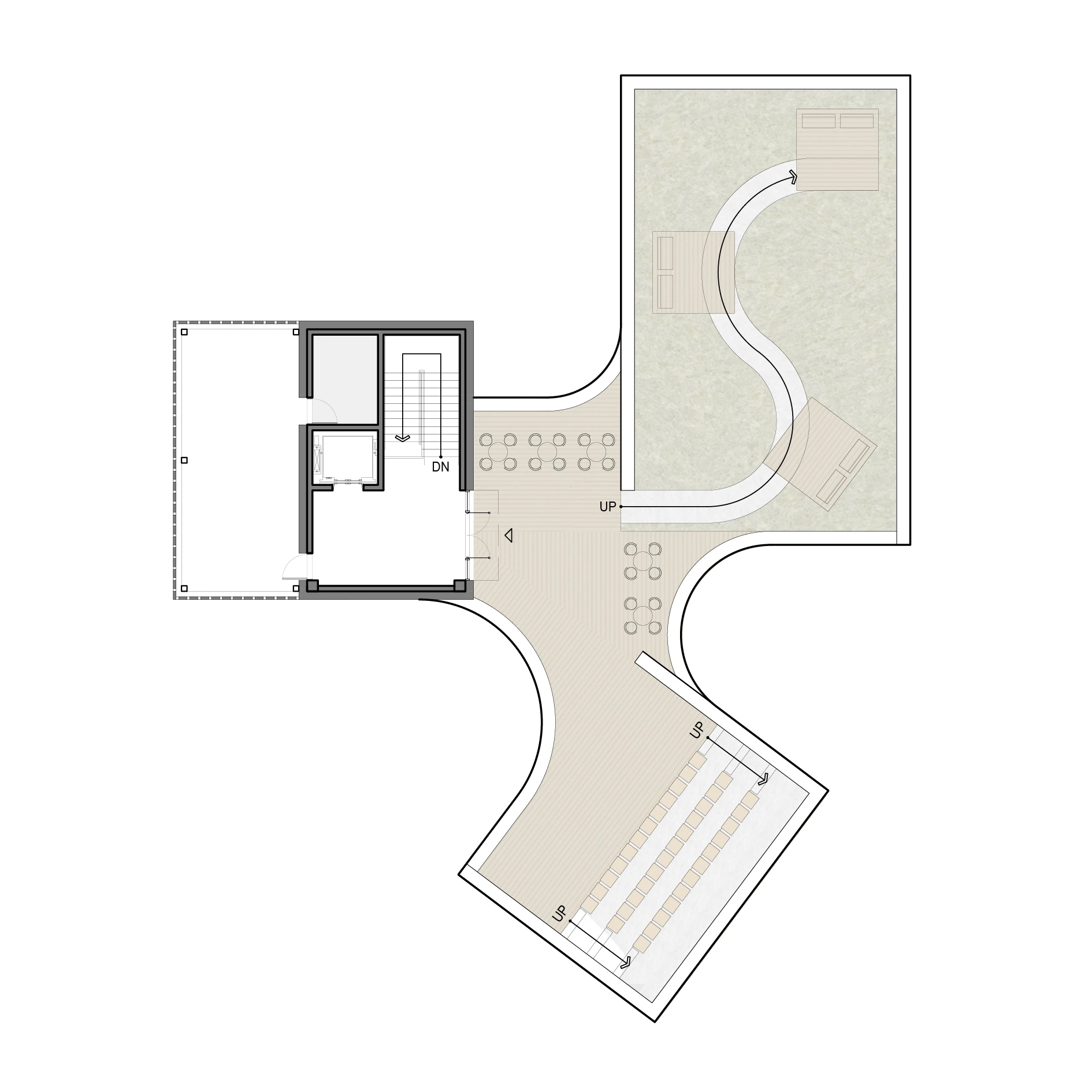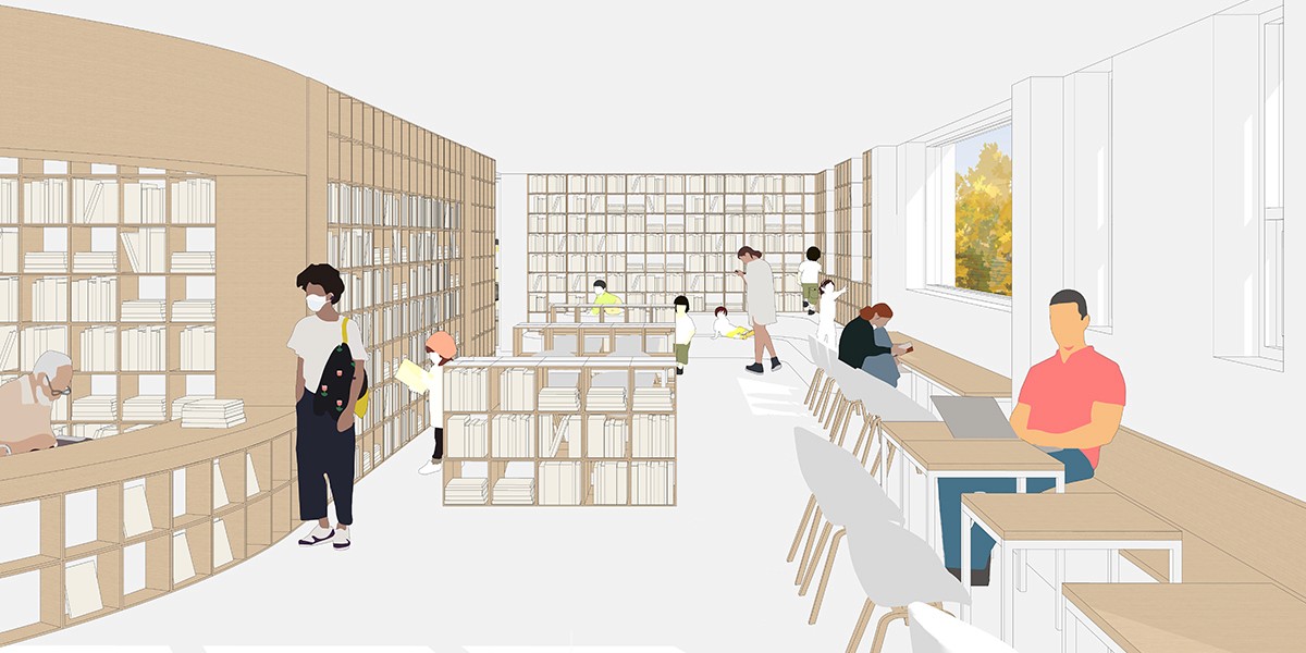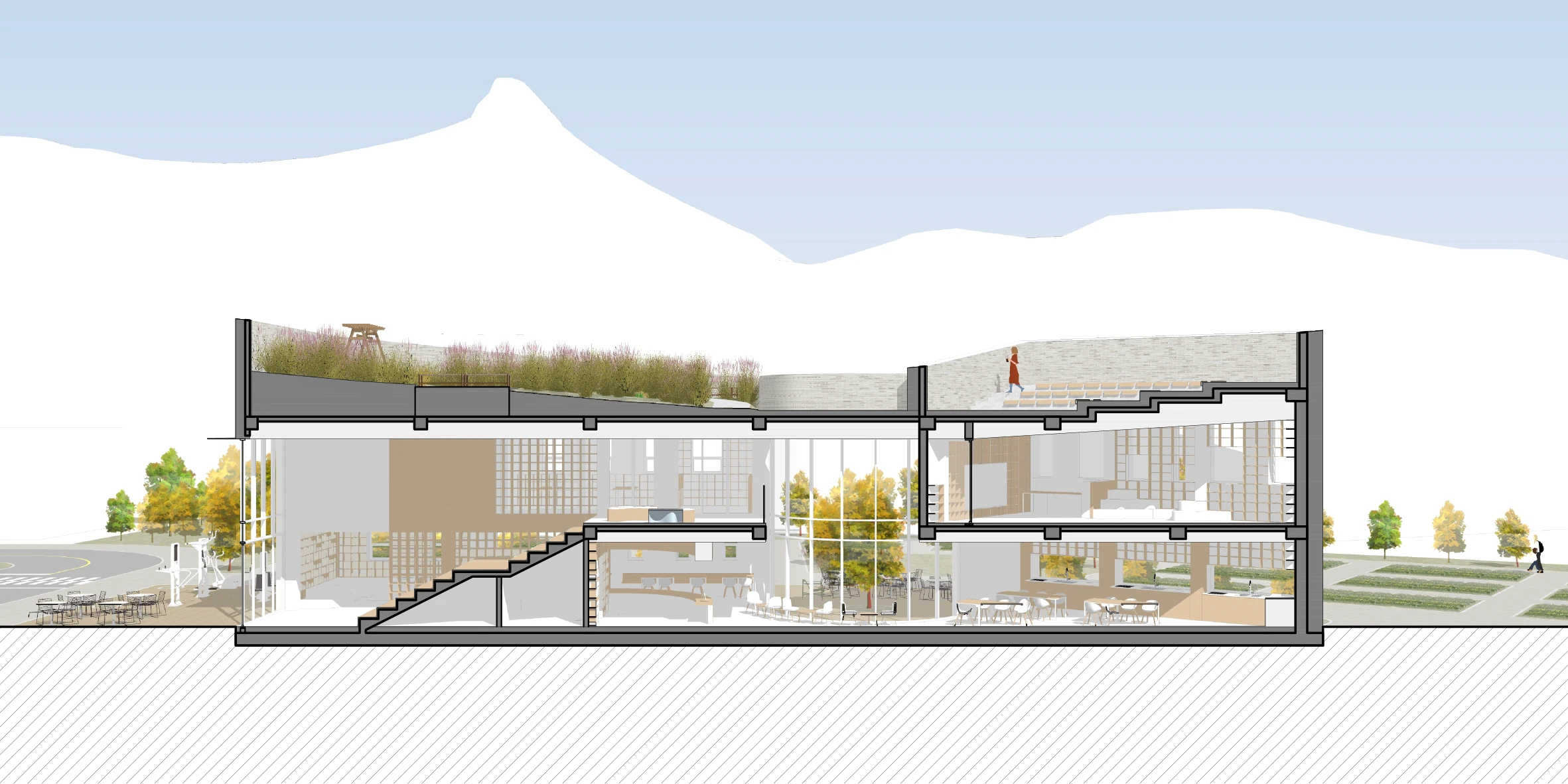 계단식 자유열람실을 통해, 1층의 도서관은 2층으로 확장되고, 도서관에서는 주거플랫폼마당과 단지가 내려다 보인다.