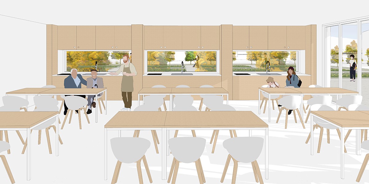 다목적문화 커뮤니티룸(마암산↔︎추풍령리 마을) : 커뮤니티마당의 마을축제나, 텃밭에서 수확한 작물을 활용한 김장담그기 등 여러 행사를 고려