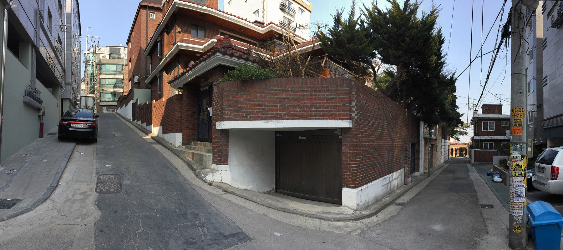 대지는 1개층 높이차가 있는 경사지에 위치하고, 2개의 단독주택 필지로 구성된다. 낮은 부분인 남측 도로에 인접하여 출입구와 주차장이 있으며, 상부에는 마당과 주택이 있다.
