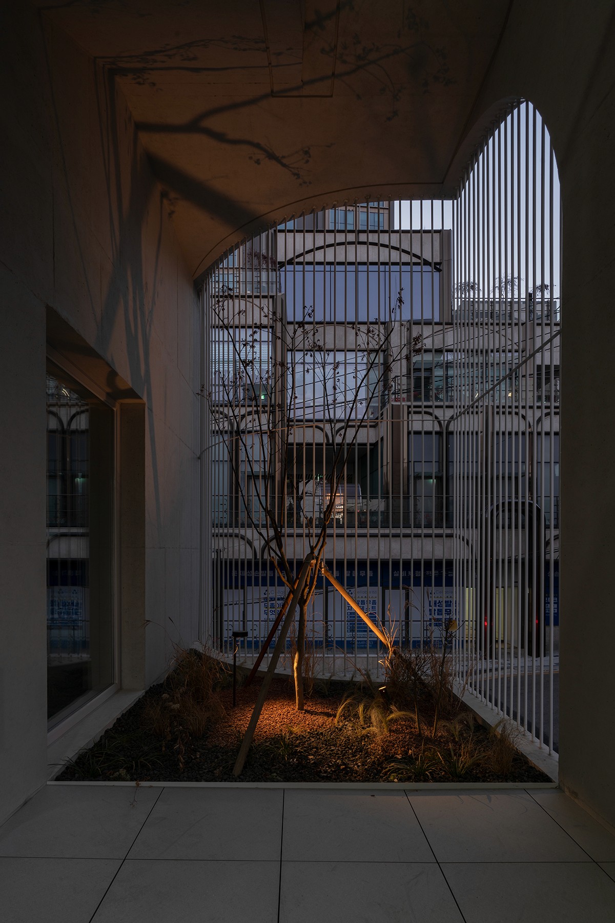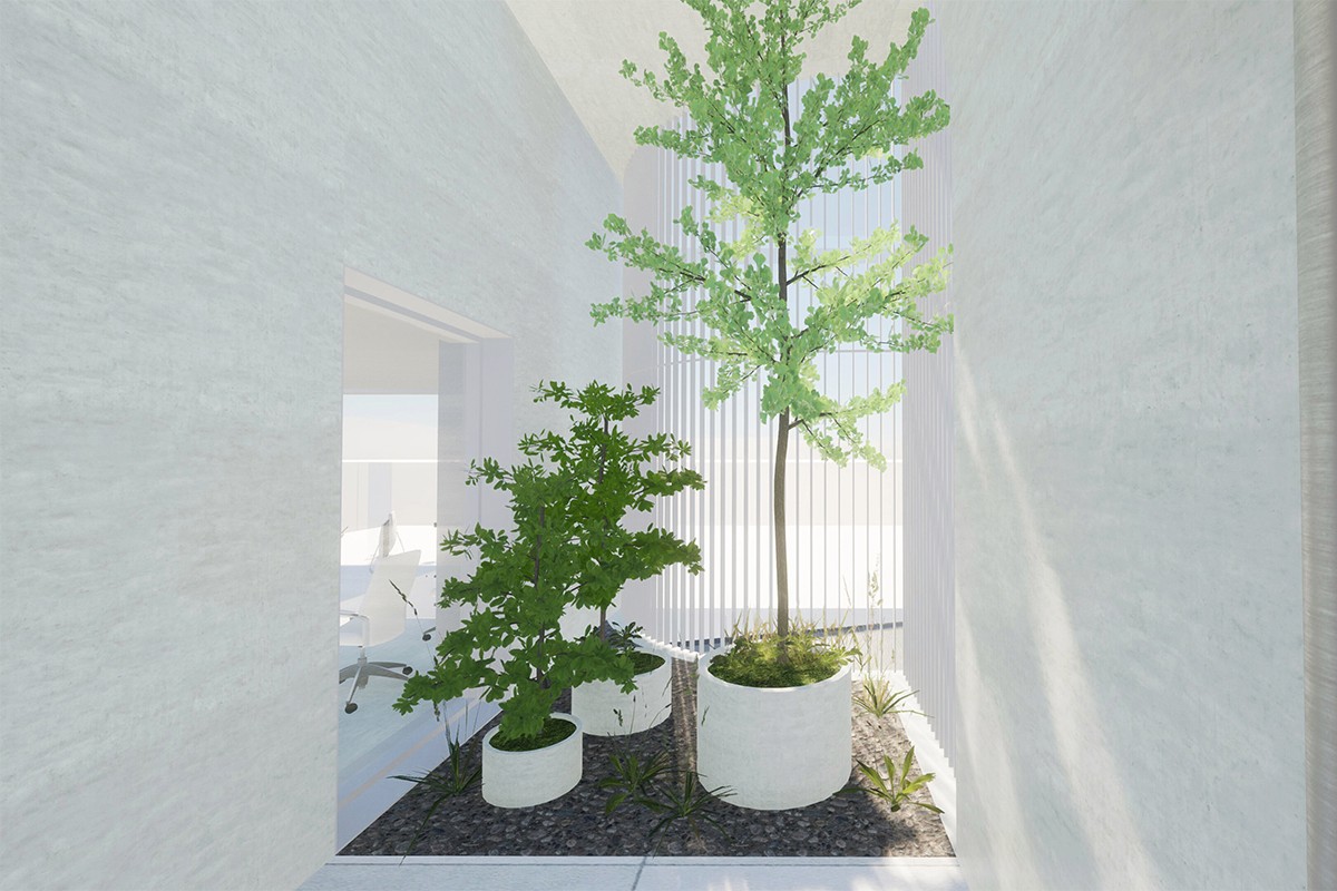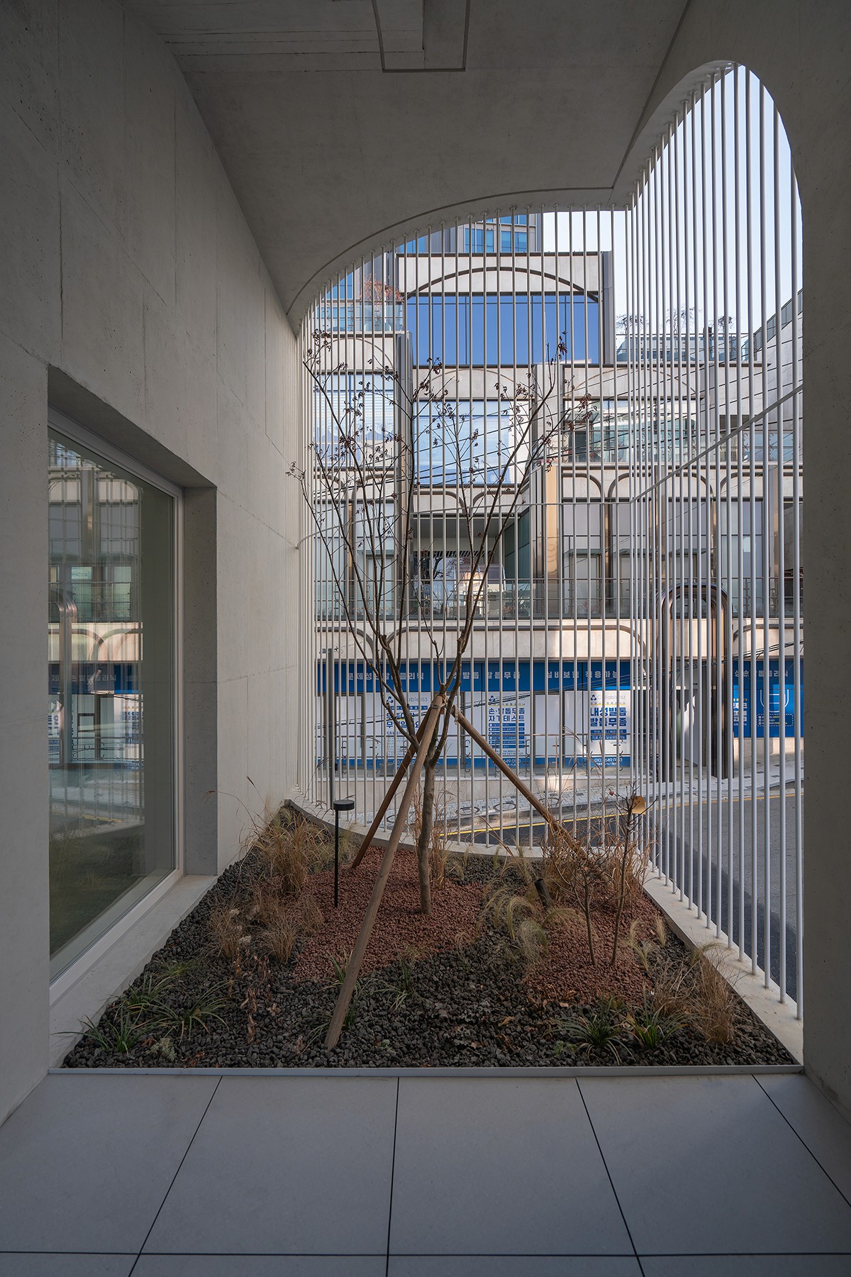 주출입구를 거쳐 계단을 오르면, 높은 층고의 발코니가 나타난다. 발코니의 조경은 휴게공간이자, 건물의 얼굴이 된다.