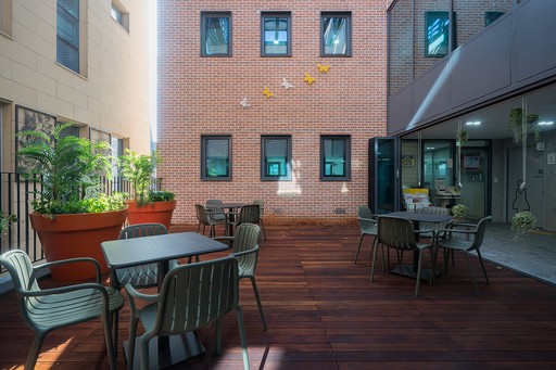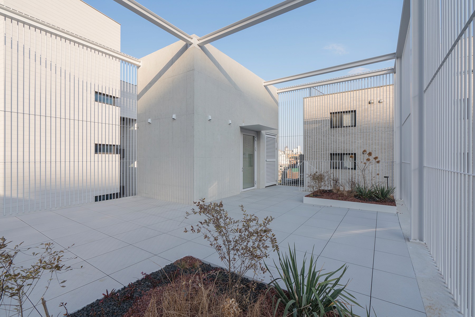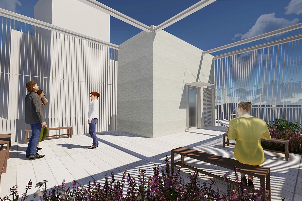 휴식이 필요할 때, 엘리베이터를 타고 옥상으로 올라간다. 옥상정원에서 4층 테라스와 2층 발코니를 거쳐 지면까지 산책하며 내려온다.