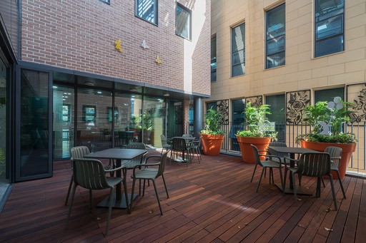 옥상에 도착하면 넓은 정원이 펼쳐진다. 건물을 이용하는 사람들의 휴게장소가 된다.